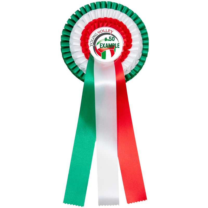 Poliestere, colore Verde Bianco Rosso. Per gli adesivi mm 50 da applicare alle coccarde vedere la sezione INCISIONI, STAMPE - Stampa a colori adesivi in vinile pag.27 - Nel catalogo a pagina 26