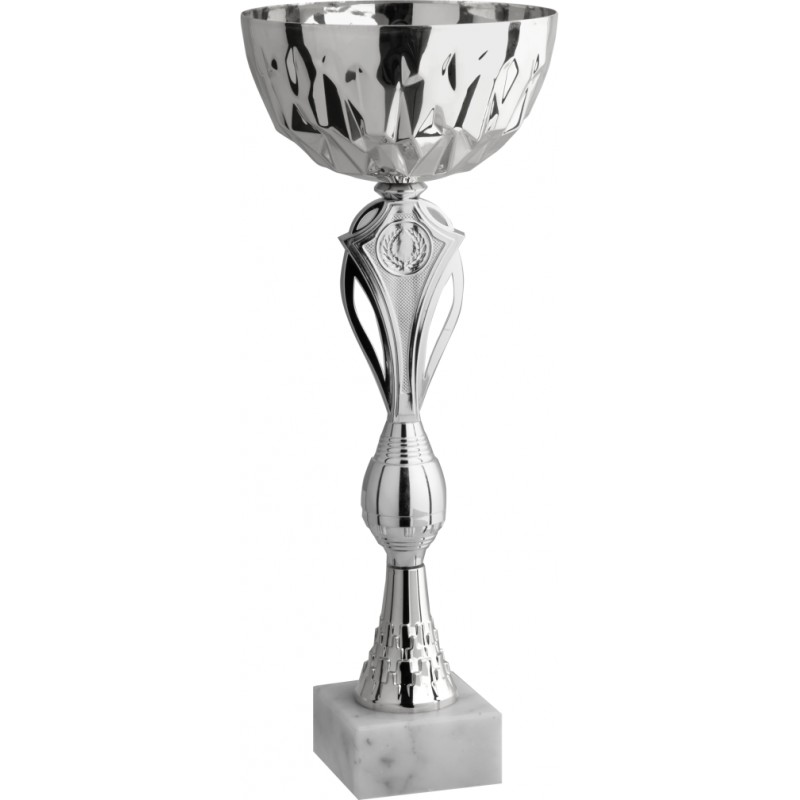Tazza in metallo argentato, gambo in plastica argentato e dorato, base in marmo bianco carrara - colore Argento - Coppa moderna con tazza semplice e di stile, il nuovo gambo è l'elemento caratterizzante del modello, le asole all'interno dello stesso donano classe e originalità contemporaneamente - Nel catalogo a pagina 10