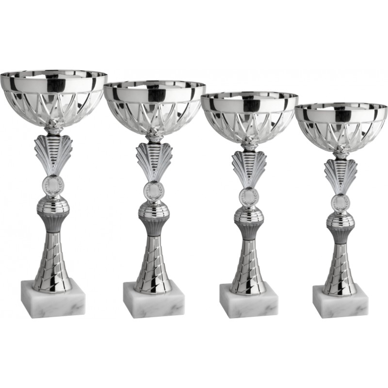 Tazza in metallo argentato, gambo in plastica argentato e dorato, base in marmo bianco carrara - colore Argento - Coppa con elementi oro-argento tutti nuovi e tazza nuova con elementi grafici evidenti e performanti. Prodotto valido sia come innovazione che come prezzo - Nel catalogo a pagina 12A
