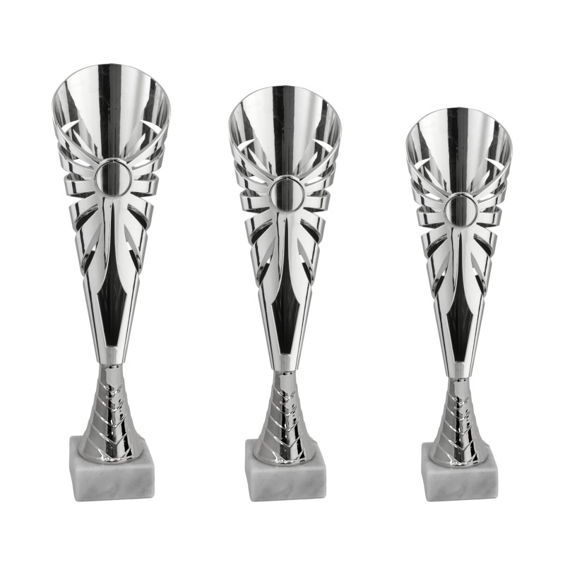 Tazza e gambo in plastica argentato, base in marmo bianco carrara - colore Argento - Coppa con tazza di stille moderno adatta anche ad ospitare eventuali adesivi raffiguranti personalizzazioni di varia natura - Nel catalogo a pagina 12C