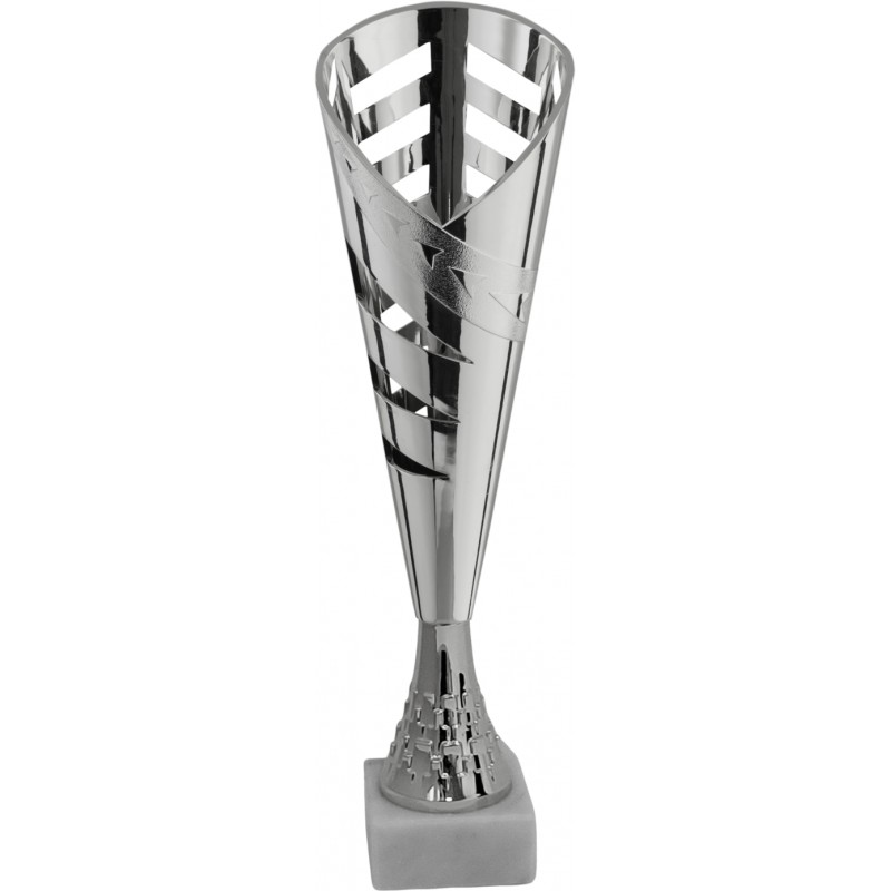 Tazza e gambo in plastica argentato, base in marmo bianco carrara - colore Argento - Coppa tipo conica allungata, molto conveniente e di ottima manifattura, adatta per premiazioni con budget contenuti - Nel catalogo a pagina 13A