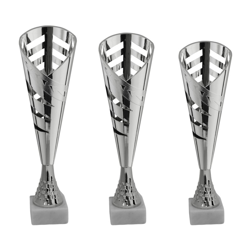 Tazza e gambo in plastica argentato, base in marmo bianco carrara - colore Argento - Coppa tipo conica allungata, molto conveniente e di ottima manifattura, adatta per premiazioni con budget contenuti - Nel catalogo a pagina 13A