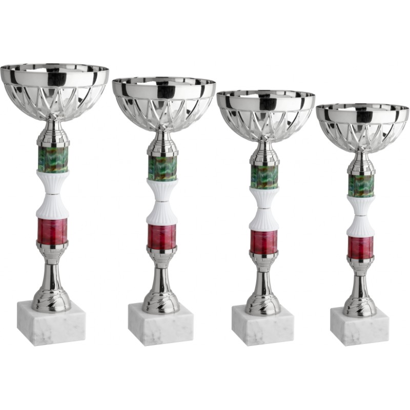 Tazza in metallo, gambo in plastica, base in marmo bianco carrara, colore Argento. Coppa moderna con tazza a raggi dal disegno nuovo e gambo dallo stile lineare e multicolore, prodotto conveniente con un buon rapporto costo/dimensione che lo rende certamente considerevole nella scelta di alternative possibili. - Nel catalogo a pagina 12A