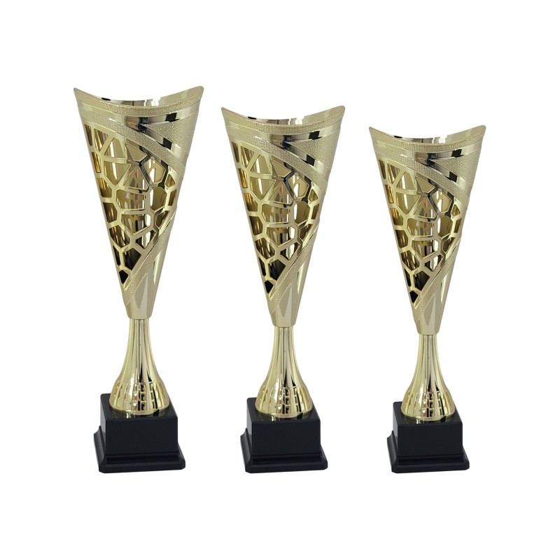 Tazza e gambo in plastica dorato, base in plastica e resina, colore Oro. Coppa dal design moderno, con il miglior rapporto prezzo dimensione, tutta metallizzata monocolore con base nera, un prodotto veramente top. - Nel catalogo a pagina 13A