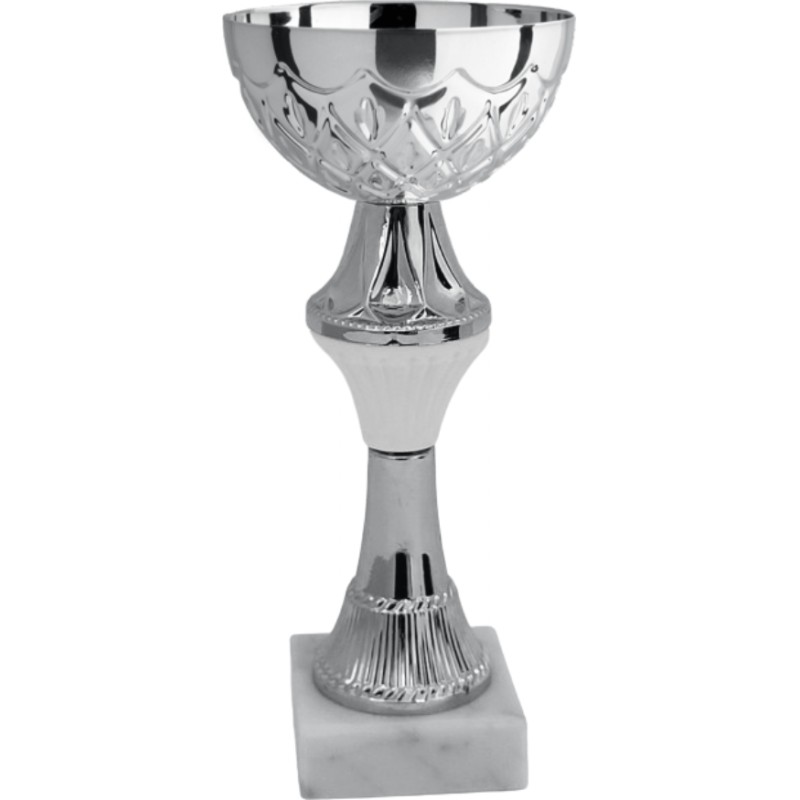 Tazza in metallo argentato, gambo in plastica argentato, base in marmo bianco carrara, colore Argento. Coppa piccola e conveniente, con particolare gambo abbinato alla bianco della base in marmo carrara. Questo piccolo prodotto è stato creato per un utilizzo all'interno di manifestazioni dove è necessario consegnare ad ogni partecipante un simbolo della propria partecipazione o vincita. - Nel catalogo a pagina 13D
