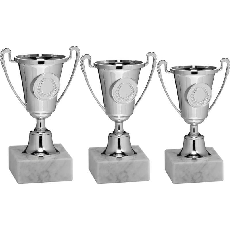 Additional informationMini coppa color argento con manici molto carini ed elemento centrale alloro, monocolore, Può ospitare dischi e adesivi diametro 25 mm, codice per acquisti fino a 5 pz