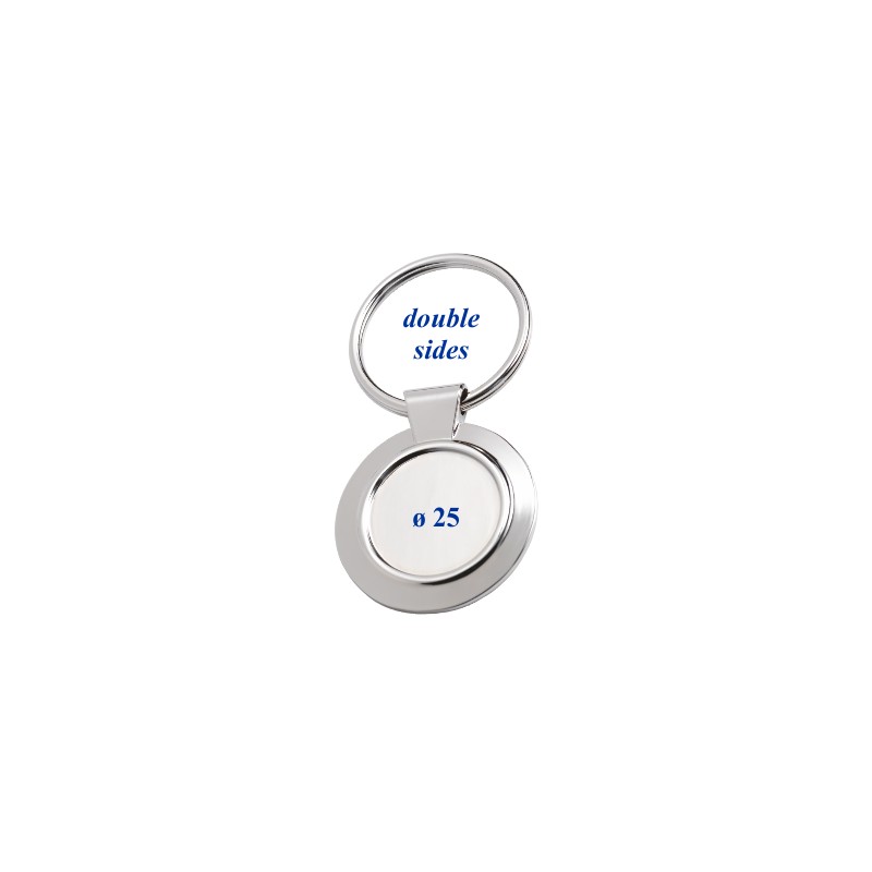 Additional informationPortachiavi in acciaio adatto ad essere personalizzato con incisione o con l'applicazione di un Adesivo resinato mm 25 da entrambi i lati. Fornito completo di box in cartoncino.