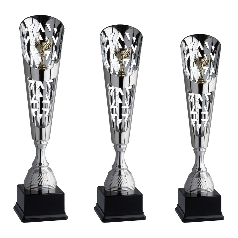 Tazza in metallo argentato, gambo in plastica argentata, base in plastica nero lucido e resina - colore Argento - Trofeo novità con ottimo rapporto prezzo altezza, fornito completo di vittoria, ma su richiesta si può fornire con altre figurine sportive presenti sul nostro catalogo in modo da dare una più spiccata specificità nel suo utilizzo adatto a qualsiasi torneo, evento o manifestazione. - Nel catalogo a pagina 4
