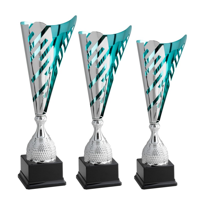 Tazza in metallo argentato lucido con interno acqua marina, gambo in plastica argentato, base in plastica nero lucido e resina, colore Argento. ll trofeo è veramente innovativo, con lavorazioni laser dal design moderno con il doppio colore che ne evidenzia tutta la potenza dello stile italiano della migliore tradizione estetica. Come molti dei nostri prodotti lo stile italiano riconosciuto nel mondo fa la differenza, questo prodotto è al top in questa categoria. - Nel catalogo a pagina 4C