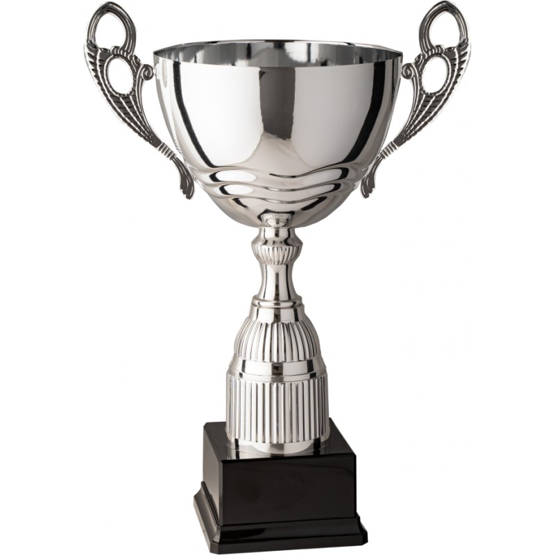 Tazza in metallo, gambo in plastica, base in plastica e resina - colore Argento - Trofeo elegante semi classico con manici robusti e affusolati, prodotto evewgreen adatto a tutti gli sport e premiazioni - Nel catalogo a pagina 7