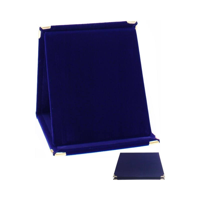 Velluto, colore Blu. Cartella per targhe piane, apertura in verticale, misura interna pannello cm. 14X20,5. Per l'acquisto di confezioni da 10 pezzi scegliere il codice specifico. - Nel catalogo a pagina 21B, ex codice 21.323