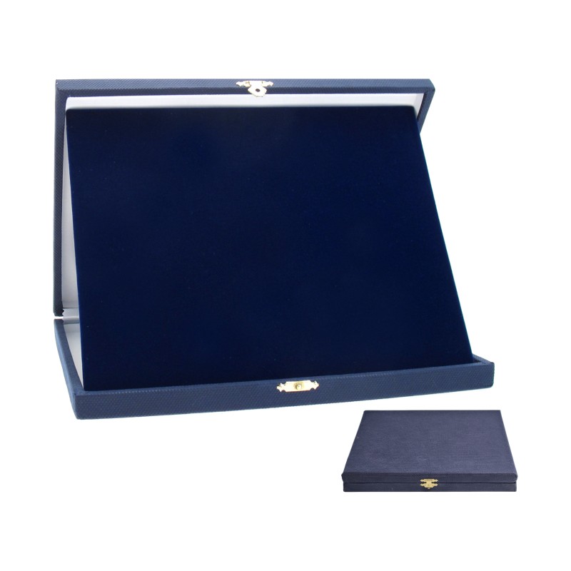 Tessuto tnt, colore Blu. Astuccio per targhe, apertura in orizzontale, misura interna pannello cm. 24,5x19,5. Per l'acquisto di confezioni da 10 pezzi scegliere il codice specifico. - Nel catalogo a pagina 21A, ex codice 21.192