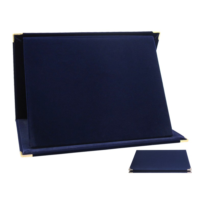 Velluto, colore Blu. Cartella per targhe piane, apertura in orizzontale, misura interna pannello cm. 20X16 - Nel catalogo a pagina 21A, ex codice 21.254.10B