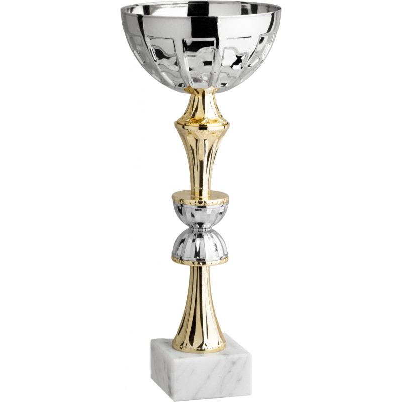 Tazza in metallo, gambo in plastica, base in marmo, colore Argento. Coppa moderna economica, con gambo di assoluta innovazione, unica particolare e originale per premiare ogni campione, ogni partecipante. Un prodotto semplice ed elegante con un tocco di originalità unico, una vera novità. Tazza italiana realizzata con un disegno nuovo. - Nel catalogo a pagina 11A