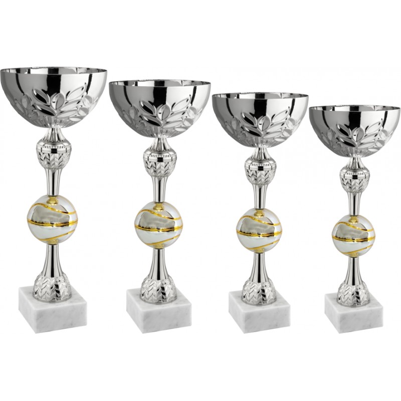 Tazza in metallo, gambo in metallo e plastica, base in marmo, colore Argento. Coppa con palla centrale in metallo bicolore dello sport specifico basket – pallacanestro palla canestro, adatta a premiazioni dove l'evidenza dello sport è elemento fortemente caratterizzante e di assoluto valore. - Nel catalogo a pagina 9