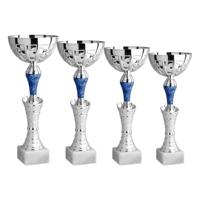 Tazza in metallo dorato, gambo in plastica argentato, verde e dorato, base in marmo bianco carrara, colore Argento. Coppa realizzata con robusto elemento argento satinato/lucido e una parte alta variegata verde, la tazza, pur essendo economica, è di massima qualità, di produzione italiana e con un design nuovo originale. - Nel catalogo a pagina 9