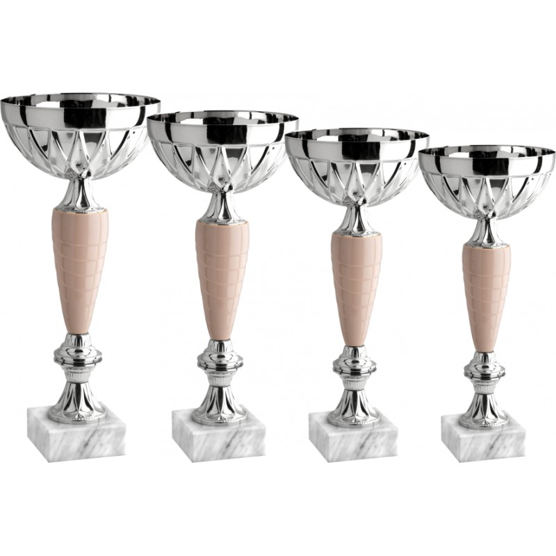 Tazza in metallo, gambo in plastica, base in marmo bianco carrara, colore Oro. Coppa tutta nuova, creata per l'ultima collezione della nostra azienda con tazza a raggi e gambo caratterizzato dal centrale in colore sabbia, una vera novità per il mercato dei premi. Il prodotto è non solo conveniente ma anche molto carino come estetica e si presta per concludere eventi e manifstazioni di ogni categoria. - Nel catalogo a pagina 13