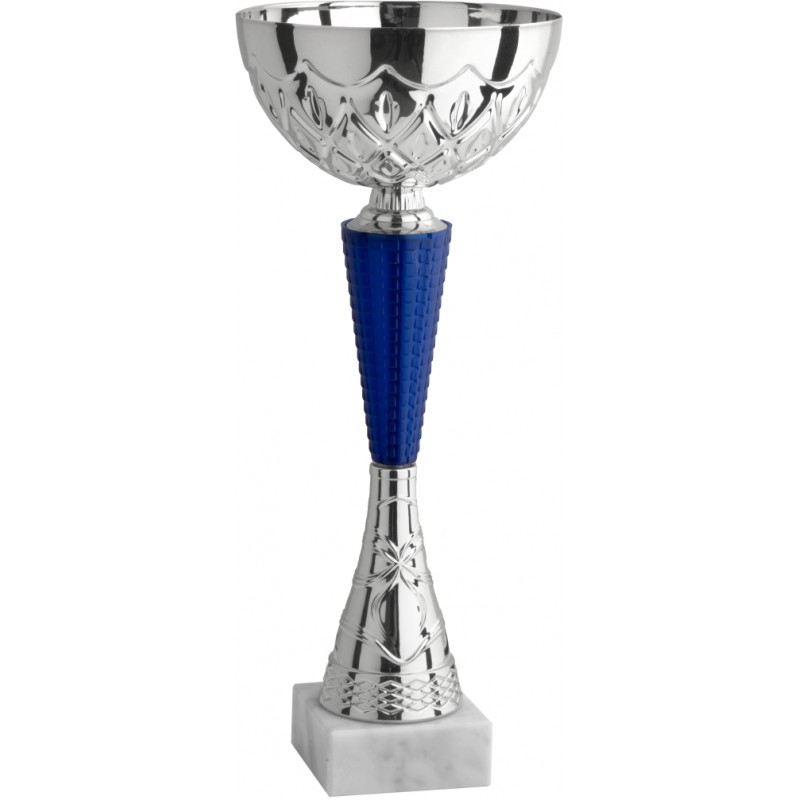 Tazza in metallo, gambo in plastica, base in marmo bianco carrara, colore Argento. Coppa dal design nuovo con elementi originali sia nel gambo che nella tazza. Prodotto conveniente con un'estetica molto gradevole. Il prodotto è consigliato per ogni tipo di utilizzo sia sportivo che culturale o rappresentativo, - Nel catalogo a pagina 13