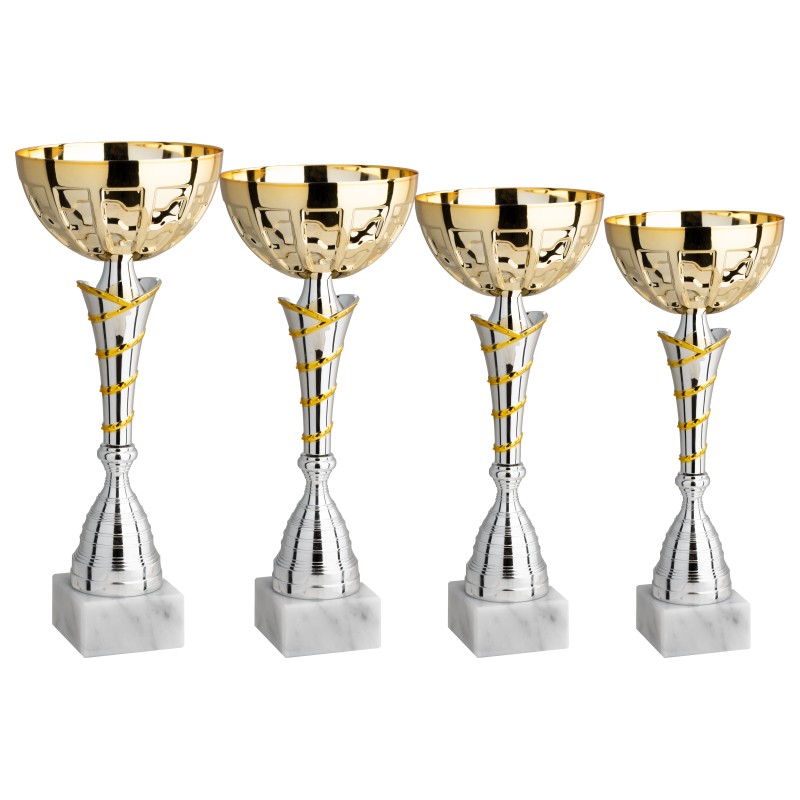 Caratteristiche AggiuntiveCoppa con elementi tutti nuovi, gambo composto da due componenti, un cono in argento con striature orizzontali e un riser argento lucido con righe a spirale a contrasto di colore
