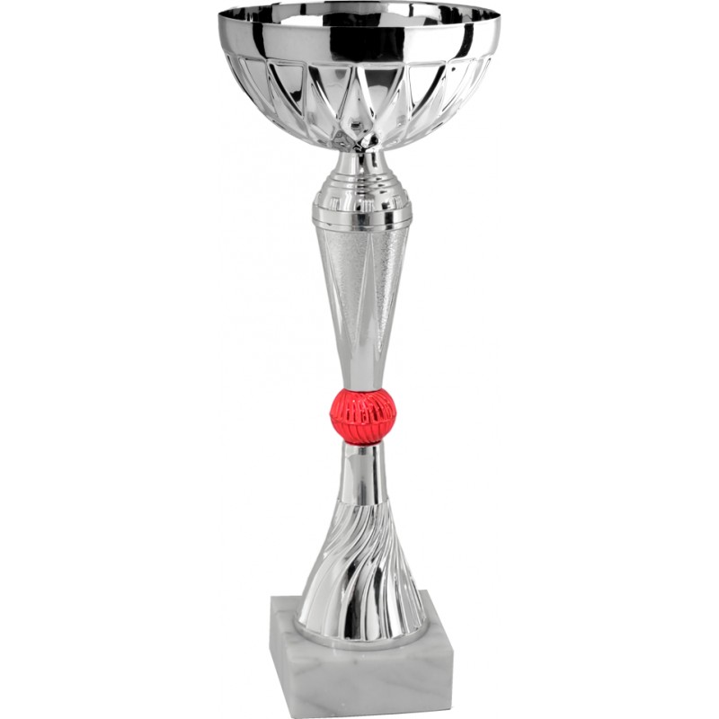Tazza in metallo, gambo in plastica, base in marmo, colore Argento. Coppa economica e armoniosa, con tazza e base italiana e gambo con elementi metallizzati con rporti a contrasto e pallina intemediario - Nel catalogo a pagina 12A