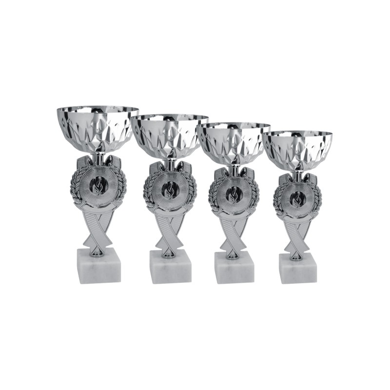 Tazza in metallo, gambo in plastica, base in marmo, colore Oro. Coppa con gambo raffigurante una coccarda che, se necessario, può ospitare un adesivo o un disco della dimensione di 25 o 50 mm. Prodotto molto conveniente e di ottima presenza, atto ad accompagnare le più qualificate cerimonie di premiazione per ogni tipo di sport, evento culturale e di rappresentanza. - Nel catalogo a pagina 13D