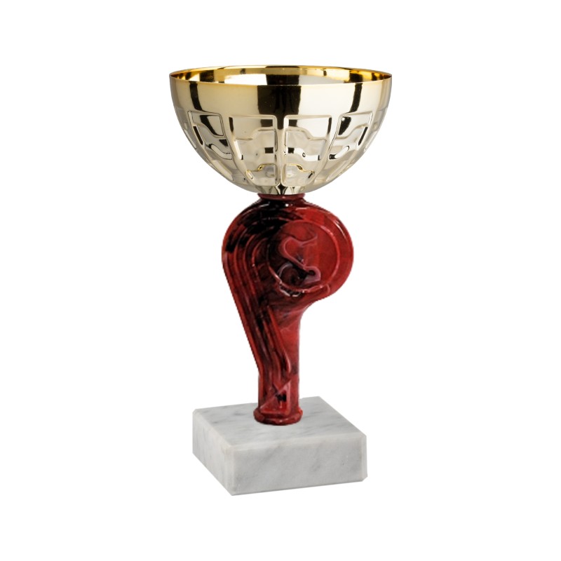 Tazza in metallo, gambo in plastica, base in marmo, minimo pz 6, colore Oro. - Nel catalogo a pagina 13C