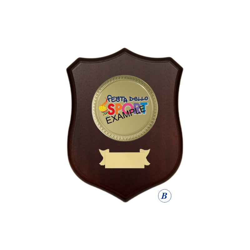 Crest in legno, disco e targhetta in alluminio, colore Noce. - Nel catalogo a pagina 25