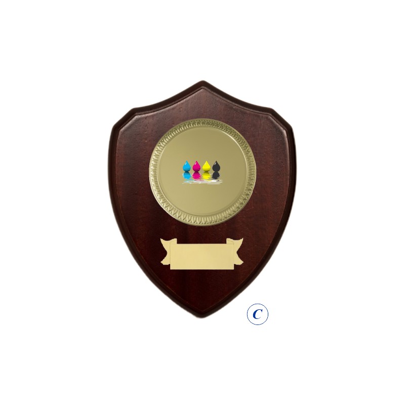 Crest in legno, disco e targhetta in alluminio, colore Noce. - Nel catalogo a pagina 25