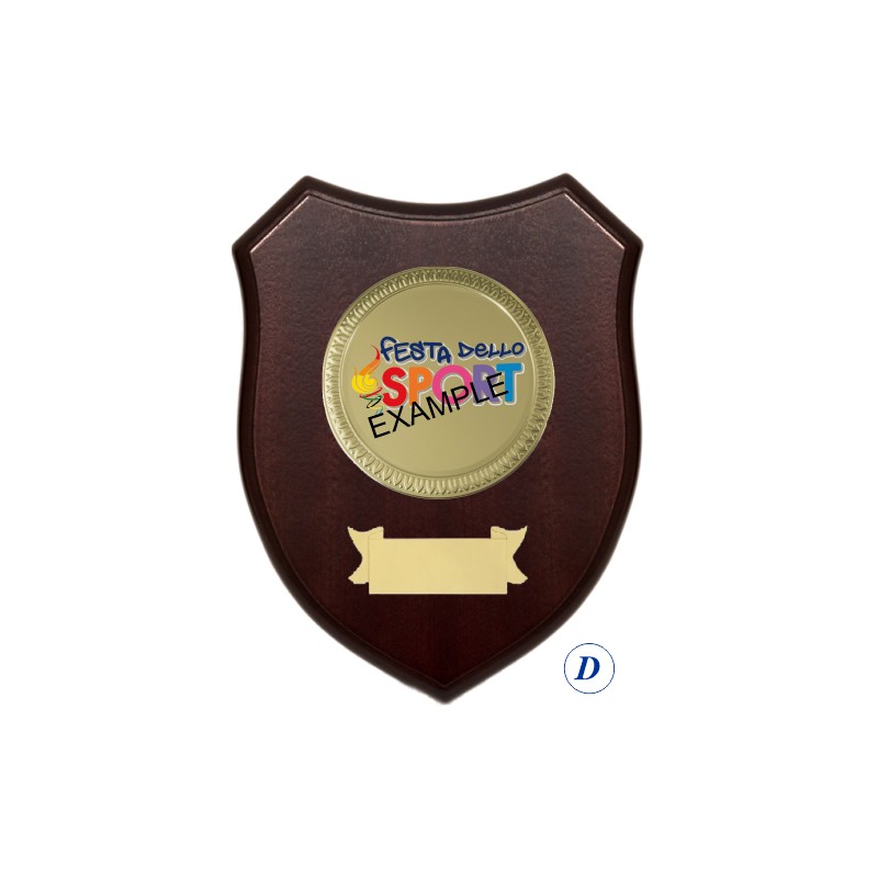 Crest in legno, disco e targhetta in alluminio, colore Noce. - Nel catalogo a pagina 25