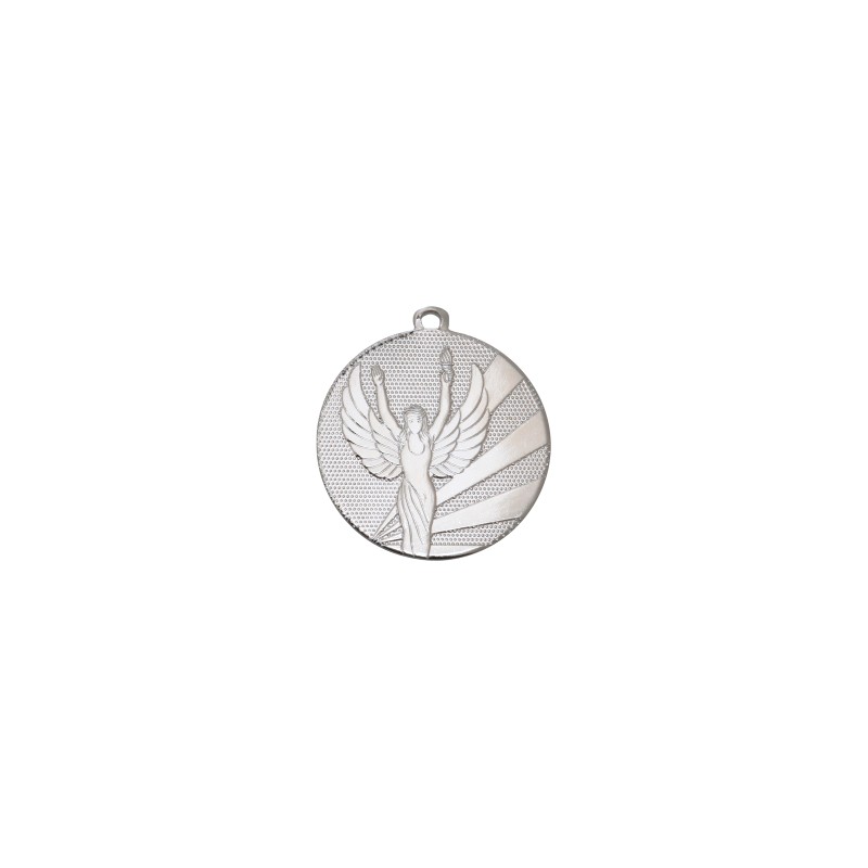 Metallo, colore Argento. Medaglia vittoria adatta ad essere incisa sul retro o ad ospitare adesivo in plastica personalizzato 27.E05. Prodotto acquistabile in quantità richiesta - Nel catalogo a pagina 23, ex codice 23.009.23SQ