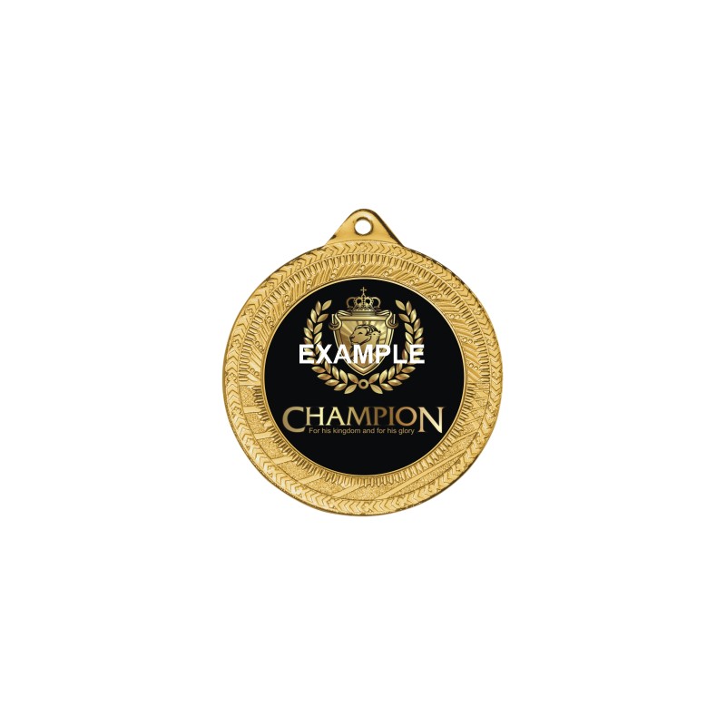 Metallo, colore Oro. Confezione medaglie con interno mm 50 adatte ad essere incise fronte e retro o ad ospitare un disco in alluminio art. 18.640 e un adesivo resinato art. 23.X, un adesivo resinato personalizzato (minimo 240 pz art. 23.59) o un adesivo in Pvc art. A50 . Medaglia gr. 59. - Nel catalogo a pagina 23B