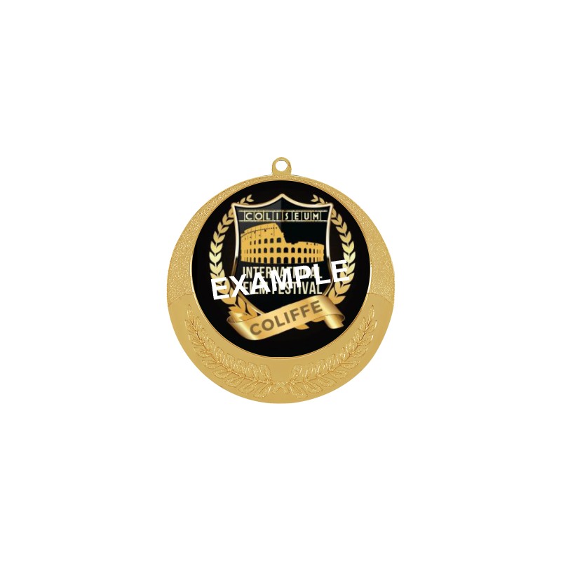 Metallo zinc alloy, colore Oro. Prodotto acquistabile in quantità richiesta, medaglia con interno mm 70 adatte per l'incisione ronte/retro, per ospitare sul fronte dischi in alluminio mm 70, adesivi personalizzati mm 70 sul fronte e mm 80 sul retro, magari trasparenti o anche adesivi resinati personalizzati sul fronte (per i resinati mm 70 personalizzati è prevista una quantità minima). - Nel catalogo a pagina 23B