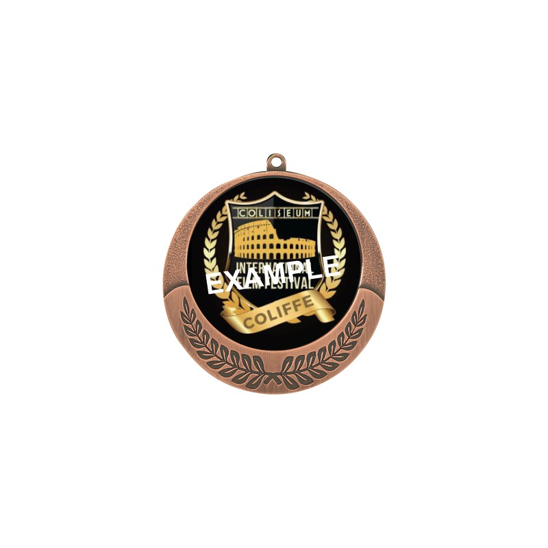 Metallo zinc alloy, colore Bronzo. Prodotto acquistabile in quantità richiesta, medaglia con interno mm 70 adatte per l'incisione ronte/retro, per ospitare sul fronte dischi in alluminio mm 70, adesivi personalizzati mm 70 sul fronte e mm 80 sul retro, magari trasparenti o anche adesivi resinati personalizzati sul fronte (per i resinati mm 70 personalizzati è prevista una quantità minima). - Nel catalogo a pagina 23B