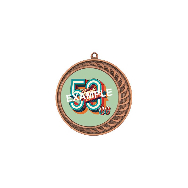 Metallo, colore Bronzo. Prodotto acquistabile in quantità richiesta, medaglia con interno mm 70 adatte per l'incisione ronte/retro, per ospitare sul fronte dischi in alluminio mm 70, adesivi personalizzati mm 70 sul fronte e mm 80 sul retro, magari trasparenti o anche adesivi resinati personalizzati sul fronte (per i resinati mm 70 personalizzati è prevista una quantità minima). - Nel catalogo a pagina 23B