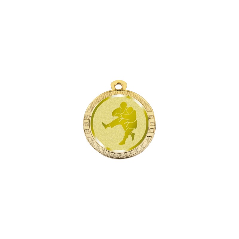 Metallo+abs, colore Oro. Confezione medaglie judo, adatte per essere incise sul retro o personalizzate con adesivi in plastica art. 27.04. Medaglia composta da una parte metallica e da una etichetta in abs mm 25 provvista di adesivo, fornita non incollata. - Nel catalogo a pagina 23, ex codice 23.001.1JU