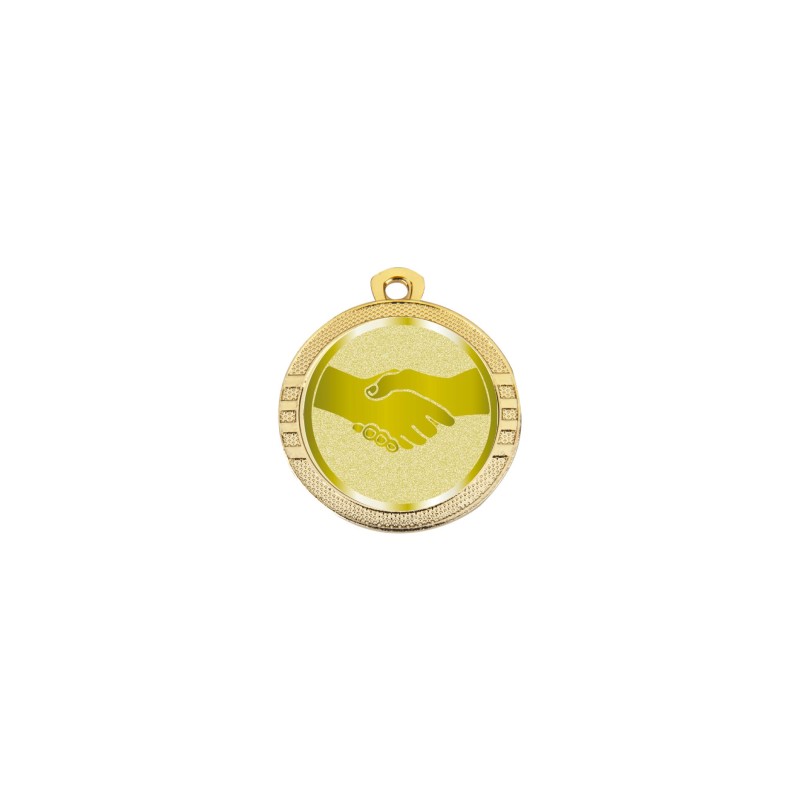 Metallo+abs, colore Oro. Confezione medaglie amicizia, mani, adatte per essere incise sul retro o personalizzate con adesivi in plastica art. 27.04. Medaglia composta da una parte metallica e da una etichetta in abs mm 25 provvista di adesivo, fornita non incollata. - Nel catalogo a pagina 23, ex codice 23.001.1AM