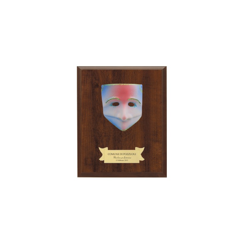 cod. P.CARN03 - Maschera in ceramica con legno cm 16x11