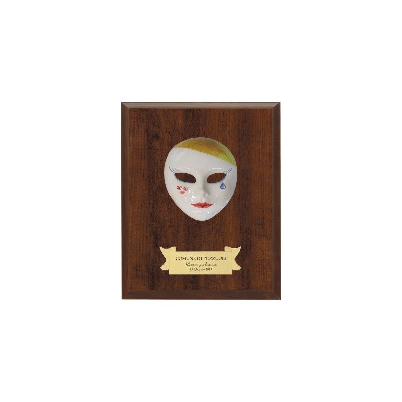 cod. P.CARN06 - Maschera in ceramica con legno cm 20x15