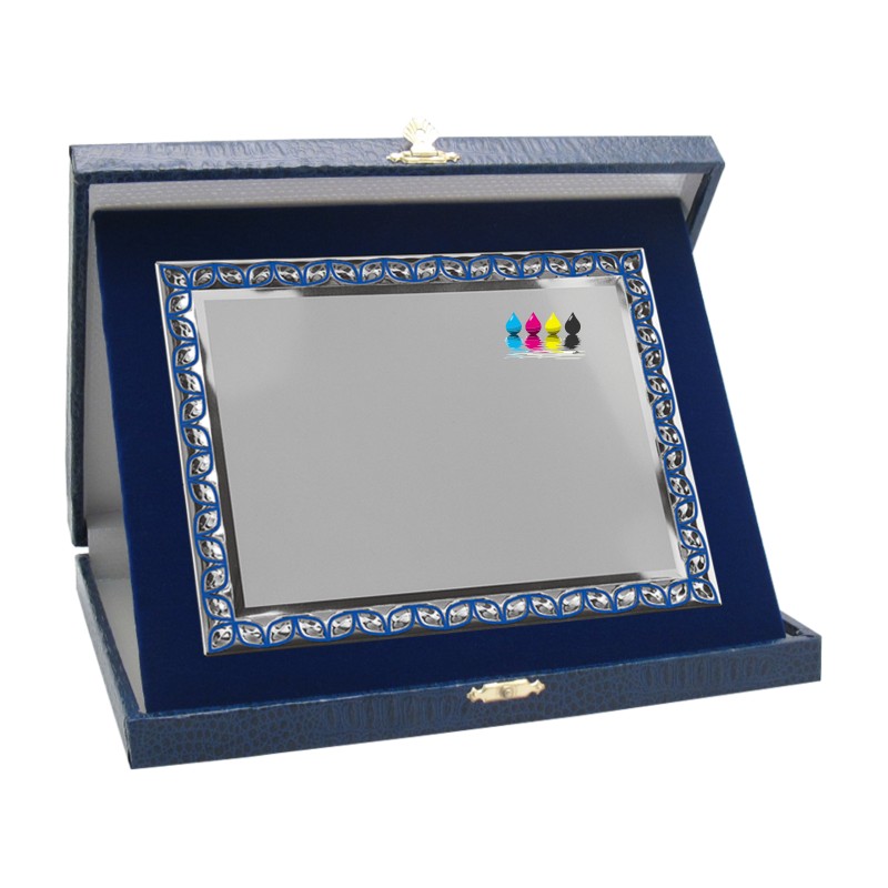 Astuccio in cartoncino, targa in alluminio, colore Argento. Targa adatta all'incisione, alla stampa diretta e con transfer - Nel catalogo a pagina 19, ex codice 19.161A.10