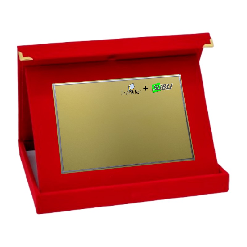 Astuccio in velluto e targa in alluminio, colore Oro. Set completo targa cm 18x13 e astuccio. Per l'acquisto di confezioni da 10 pezzi scegliere il codice specifico. - Nel catalogo a pagina 20