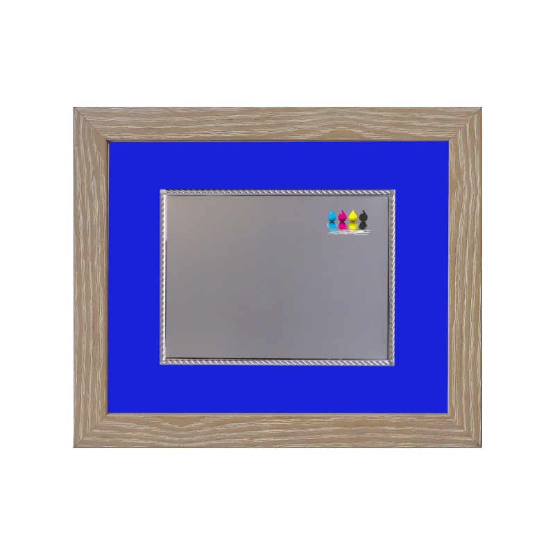 Set cornice in legno e targa in alluminio cm 20x15, colore Legno, Blu. Set targa e cornice in legno con cartoncino e passpartout, atto ad ospitare targhe, pergamene o altro, completa di vetro spessore 2 mm, schienale in mdf, ganci in orizzontale e verticale - Nel catalogo a pagina 22