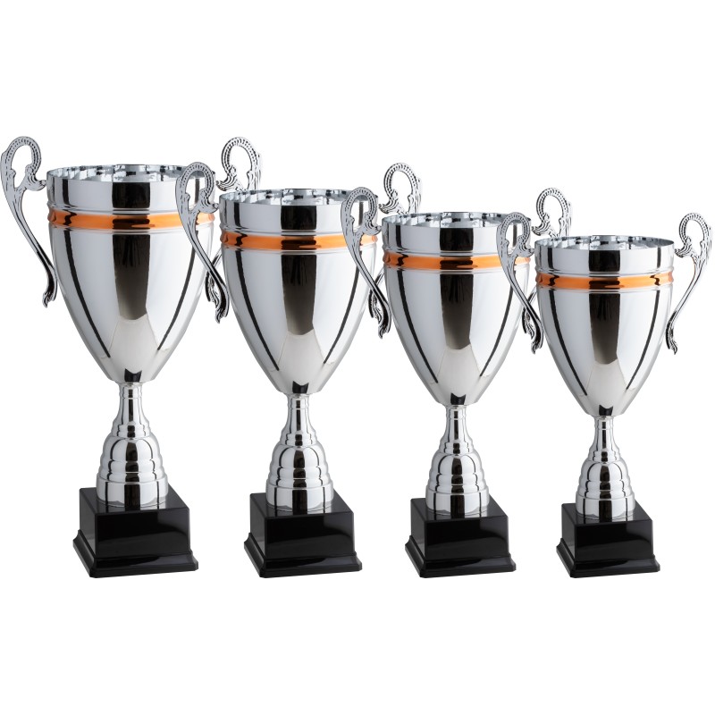 Tazza con manici in metallo argentato con fascia color rame, gambo in metallo e plastica argentata, base in plastica e resina., colore Argento/Rame. Trofeo classico con manici con lo speciale riporto in colore rame che ne esalta l'eleganza e lo stile classico con un tocco di innovazione. Il prodotto è adatto ad accompagnare la conclusione degli eventi più prestigiosi e di classe, per qualsiasi disciplina sportiva, evento culturale o rappresentanza, magari accompagnato dai brand dei più importanti sponsor. - Nel catalogo a pagina 1C