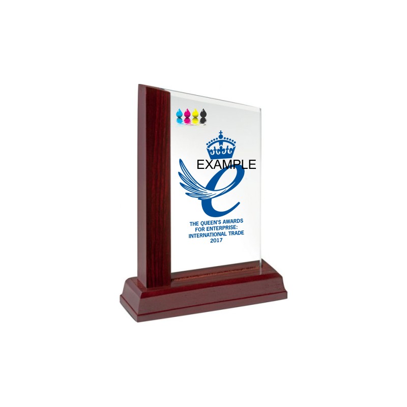 cod. P.TRC25.730A - Trofeo targa cristallo e legno cm 18