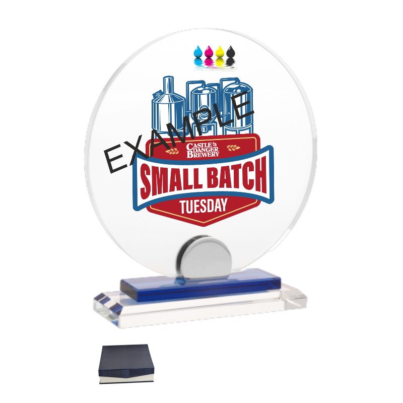 Vetro, colore Trasparente. Prodotto fornito con scatola lux blu interno in raso. Personalizzabile con incisione, con transfer e stampa diretta a colori. Prezzo per quantità fino a 5 pz. - Nel catalogo a pagina 25A