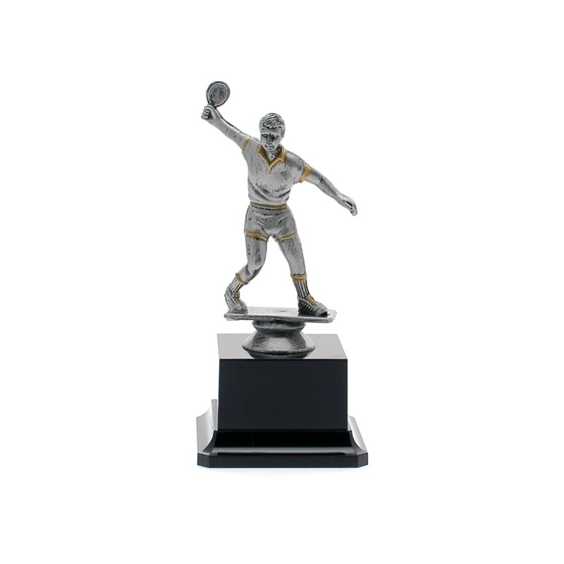 Figura in plastica, base in plastica e resina, colore Argento. Su richiesta e per quantitativi da concordare è possibile sostituire la base o fornire il prodotto senza base. Adatto per Ping Pong - Nel catalogo a pagina 17C